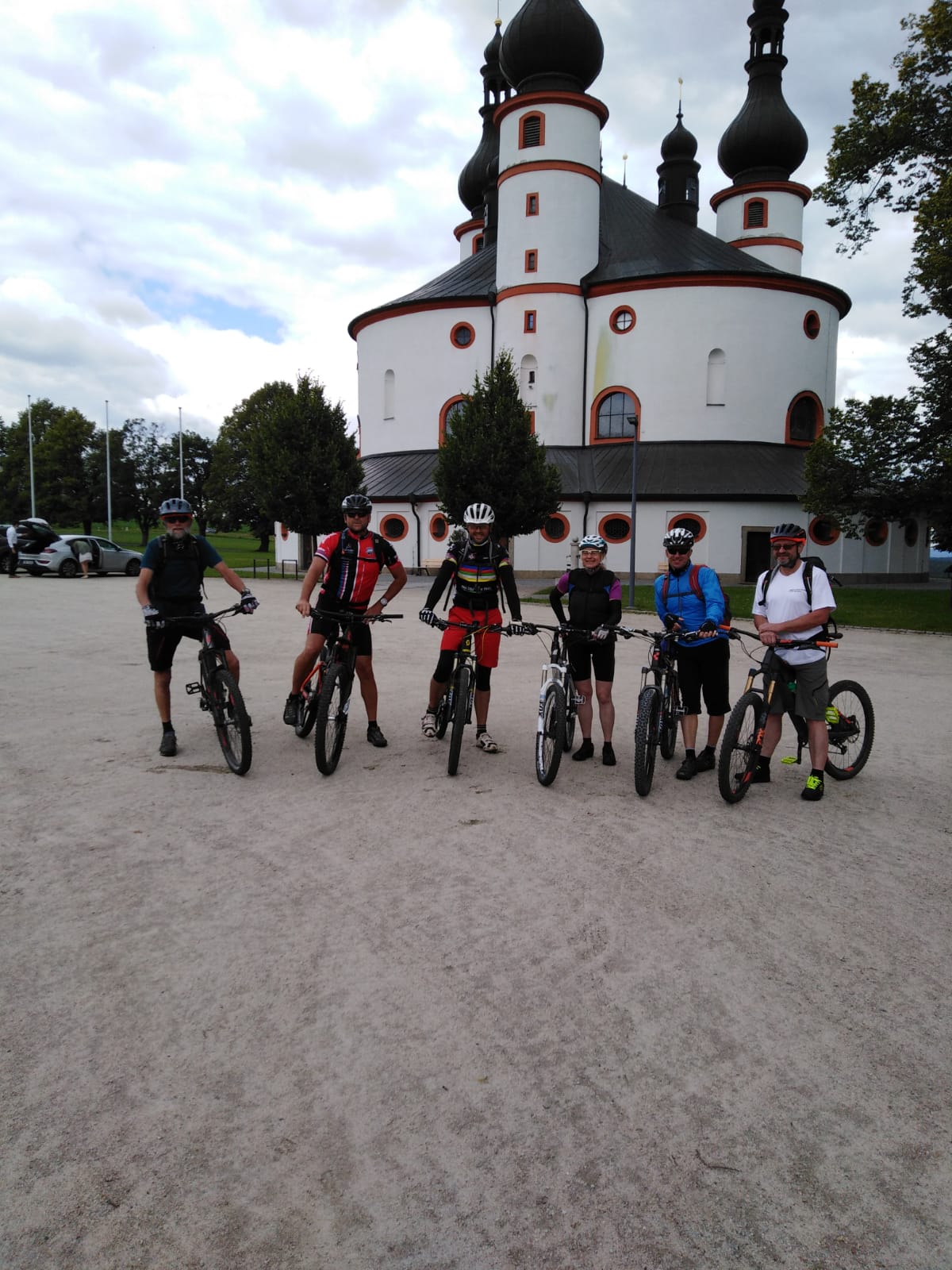 Wir ließen uns von unseren Frauen nach Kappl bei Waldsassen fahren. Hier beginnt der Nurtschweg. Nach einer kurzen Besichtigung der Kapelle, ging es um ca. 12,30 los. Anfangs leicht bergab bis zu einer Wurzelpassage. Da es aber am Vortag geregnet hatte, waren diese sehr glitschig und ich hatte gleich einen Sturz und dabei das Schaltauge verbogen. Kurze Reparatur aber die Schaltung funktioniert nicht mehr so richtig. Weiter nach Waldsassen und Neualbenreuth. Kleine Einkehr am Grenzlandturm bei Kaffee und Getränke und weiter nach Mähring. Danach sollten wir unsere erste Unterkunft nach ca.2 km erreicht haben, laut Kompasskarte. Nach 4 km bemerkten wir unseren Fehler (Karte stimmt nicht). Dank Herbert`s AV App fanden wir dann doch noch unser Ziel den Forellenhof Treppenstein. Durch unsere Fehler kamen wir verspätet an und der Wirt war deswegen ziemlich mürrisch, aber nach einer Guten Zeche hellte sich seine Mine und jeder bekam sogar noch einen Schnaps.