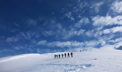 Es war wieder einmal eine tolle Gruppe in den Bergen unterwegs. Bei 4 Tagen sonnigen Wetter und viel Pulverschnee ein Erlebnis; empfehlenswert die Sternwarte.