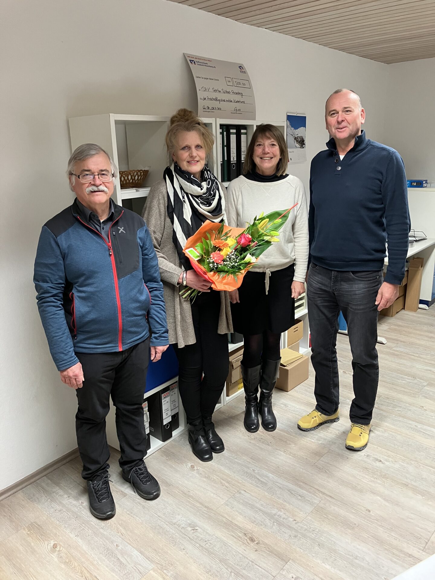 Genau 25 Jahre ist es her, dass Ulrike Gräf Ihre Tätigkeit bei der Sektion Sulzbach-Rosenberg im DAV begonnen hat. Die Mitgliederzahlen, damals 720 Sektionsmitglieder, die bis zur Eröffnung einer eigenen Geschäftsstelle durch den Hauptverein verwaltet wurden, waren stark angestiegen und die Betreuung der Mitglieder und Vermietung der Angfeldhütte erforderten eine professionelle Arbeitskraft. In Frau Gräf wurde eine engagierte Mitarbeiterin gefunden, die sowohl die Bürotätigkeit durch ihre Vorbildung hervorragend meistern konnte, wie auch durch Ihre Zugewandtheit zur Natur und zu den Bergen Verständnis für die Ziele und Anliegen des Vereins aufbrachte und auch selbst gerne an diversen Bergtouren teilnimmt. Ihre jährlichen Fortbildungen beim Hauptverein in München sicherten die steigenden Qualitätsanforderungen und zunehmende Automatisierung. Die Sektion ist in der Stadt Sulzbach-Rosenberg mit inzwischen 1700 Mitglieder der größte Verein. Für die treuen Dienste gratulierten und dankten die drei Vorstände, Bernhard Eisenreich, Elke Geck-Neidl und Dr. Michael Scherer.