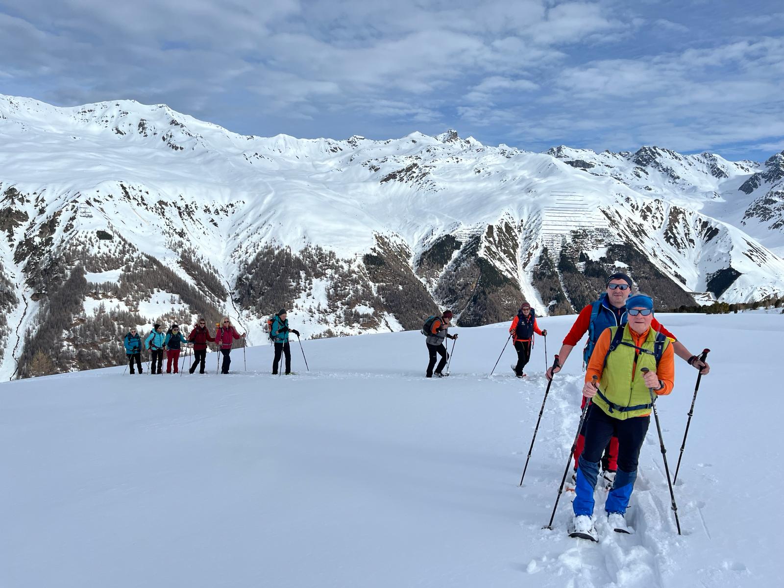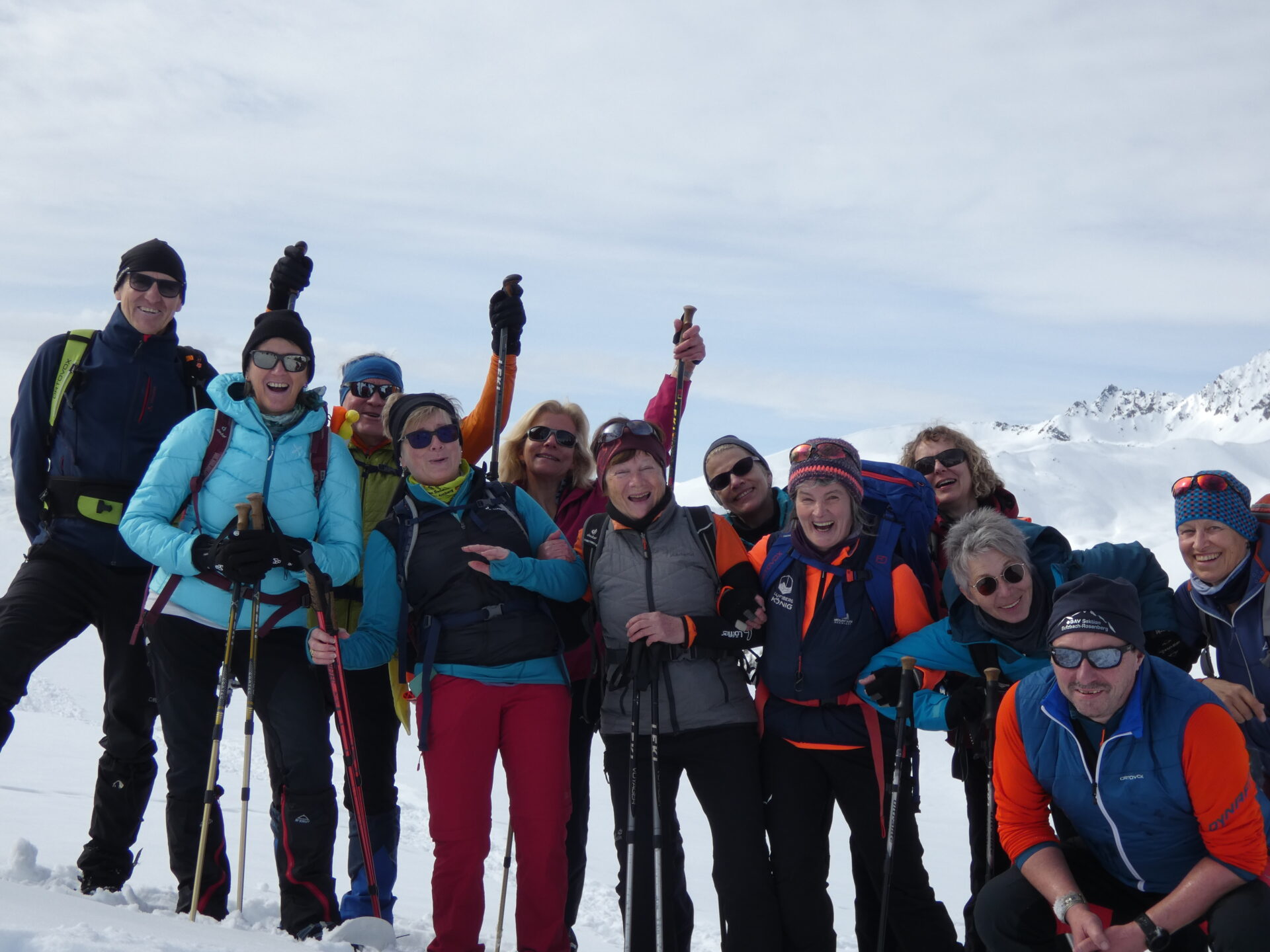 Es war wieder einmal eine tolle Gruppe in den Bergen unterwegs. Bei 4 Tagen sonnigen Wetter und viel Pulverschnee ein Erlebnis; empfehlenswert die Sternwarte.